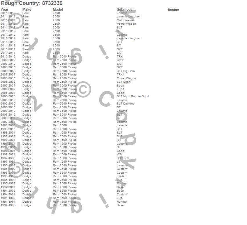 Below is an abbreviated list of applications for the N3 Steering Stabilizer.2500, 3500, Ram 1500, Ram 2500, Ram 3500, Dodge, Ram, 2012, 2011, 2010, 2009, 2008, 2007, 2006, 2005, 2004, 2003, 2002, 2001, 2000