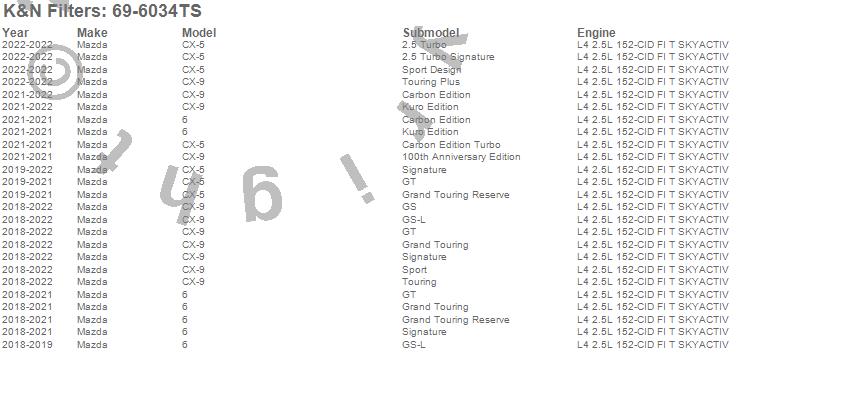 Below is an abbreviated list of applications for the Typhoon Cold Air Induction Kit.6, CX-9, Mazda, 2019, 2018