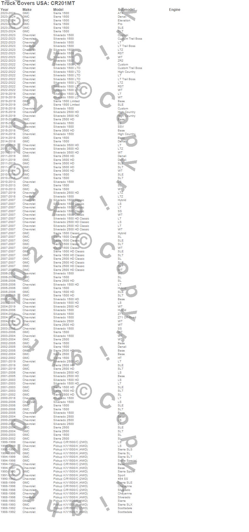 Below is an abbreviated list of applications for the American Roll Cover.C1500 Pickup, K1500, K1500 Pickup, Sierra 1500, Sierra 1500 Classic, Sierra 1500 HD, Sierra 1500 HD Classic, Sierra 1500 Limited, Sierra 2500, Sierra 2500 HD, Sierra 2500 HD Classic, Sierra 3500 HD, Silverado 1500, Silverado 1500 Classic, Silverado 1500 HD, Silverado 1500 HD Classic, Silverado 1500 LD, Silverado 1500 LTD, Silverado 2500, Silverado 2500 HD