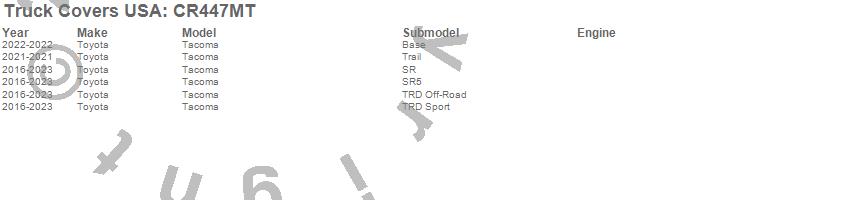 Brand: Truck Covers USAPart Number: CR447MTTonneau Cover Type: Black MatteUPC: 887753771131