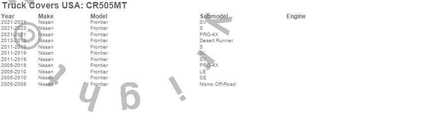 Below is an abbreviated list of applications for the American Roll Cover.Frontier, Nissan, 2024, 2023, 2022, 2021, 2019, 2018, 2017, 2016, 2015, 2014, 2013, 2012, 2011, 2010, 2009, 2008, 2007, 2006