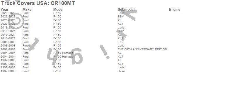 Brand: Truck Covers USAPart Number: CR100MTTonneau Cover Type: Black MatteUPC: 887753769671