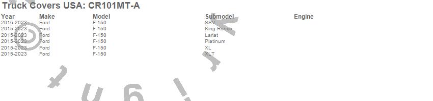 Brand: Truck Covers USAPart Number: CR101MT-ATonneau Cover Type: Black MatteUPC: 887753769718