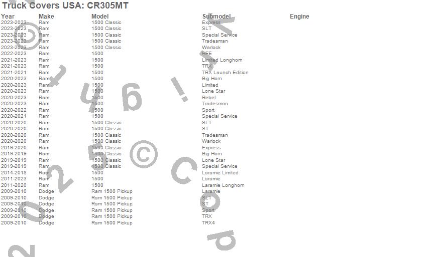 Below is an abbreviated list of applications for the American Roll Cover.1500, 1500 Classic, Ram 1500, Dodge, Ram, 2023, 2022, 2021, 2020, 2019, 2018, 2017, 2016, 2015, 2014, 2013, 2012, 2011, 2010, 2009