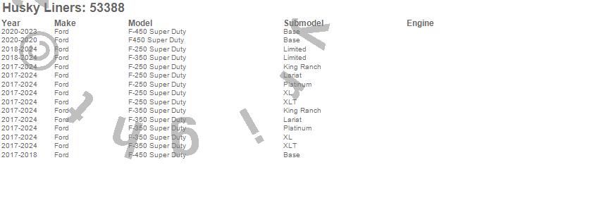 Below is an abbreviated list of applications for the X-act Contour Floor Liner.F-250 Super Duty, F-350 Super Duty, F-450 Super Duty, F450 Super Duty, Ford, 2026, 2024, 2023, 2022, 2021, 2020, 2019, 2018, 2017