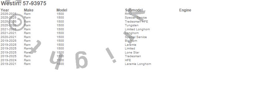 Brand: WestinPart Number: 57-93975Grille Guard Type: Steel - Black FinishUPC: 707742090725