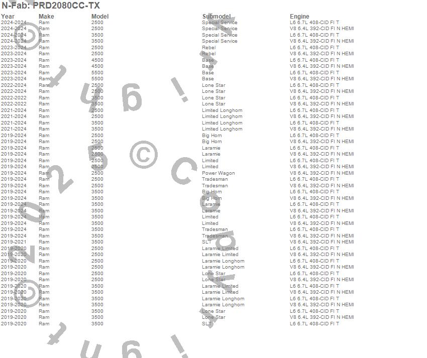 Brand: N-FabPart Number: PRD2080CC-TXNerf/Step Bar Type: 2 Steps Per Side - Rectangle - Textured BlackUPC: 843206125630