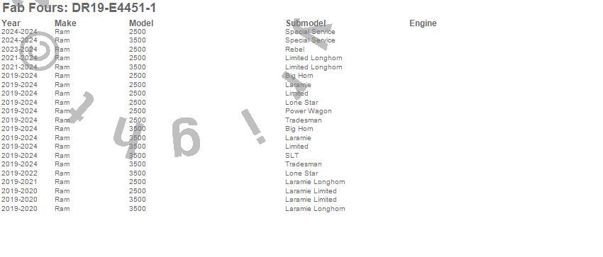 Below is an abbreviated list of applications for the Vengeance Rear Bumper.2500, 3500, Ram, 2024, 2023, 2022, 2021, 2020, 2019