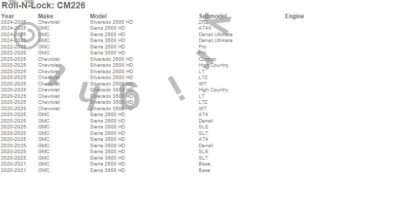 Below is an abbreviated list of applications for the Cargo Manager Rolling Truck Bed Divider.Sierra 2500 HD, Sierra 3500 HD, Silverado 2500 HD, Silverado 3500 HD, Chevrolet, GMC, 2025, 2024, 2023, 2022, 2021, 2020