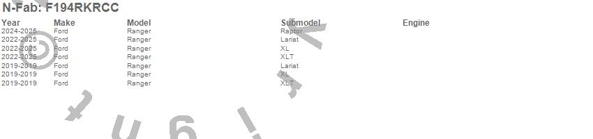Below is an abbreviated list of applications for the RKR Rock Rails Cab Length.Ranger, Ford, 2025, 2024, 2023, 2022, 2019