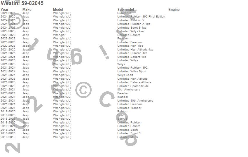 Below is an abbreviated list of applications for the WJ2 Rear Bumper.Wrangler, Wrangler (JL), Jeep, 2025, 2024, 2023, 2022, 2021, 2020, 2019, 2018