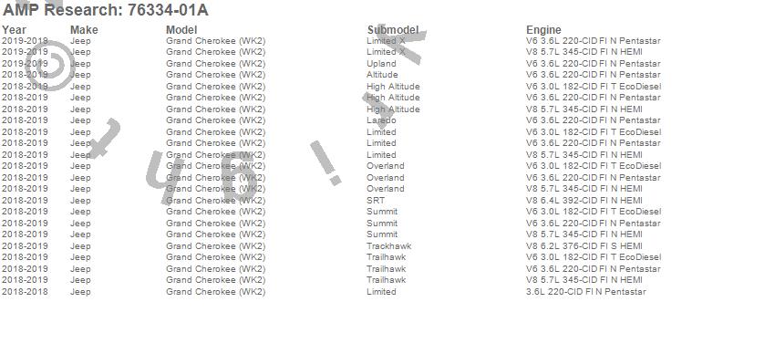 Below is an abbreviated list of applications for the PowerStep Plug-N-Play System.Grand Cherokee (WK2), Jeep, 2019, 2018