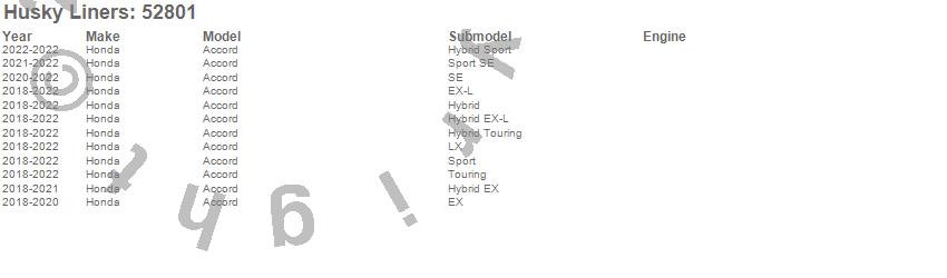 Below is an abbreviated list of applications for the X-act Contour Floor Liner.Accord, Honda, 2022, 2021, 2020, 2019, 2018