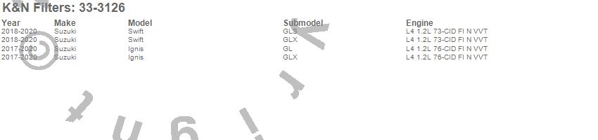 Below is an abbreviated list of applications for the Air Filter.Ignis, Swift, Suzuki, 2019, 2018, 2017