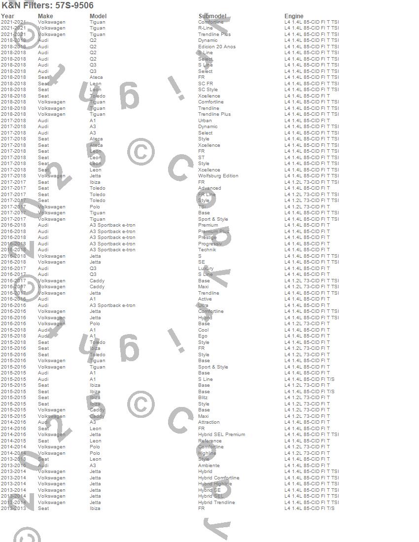 Below is an abbreviated list of applications for the 57i Series Induction Kit.A3 Sportback e-tron, Jetta, Audi, Volkswagen, 2018, 2017, 2016, 2015, 2014, 2013