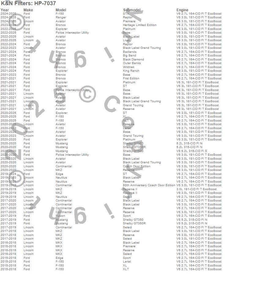 Below is an abbreviated list of applications for the Oil Filter.Continental, Edge, F-150, Fusion, MKX, MKZ, Nautilus, Ford, Lincoln, 2019, 2018, 2017, 2016, 2015