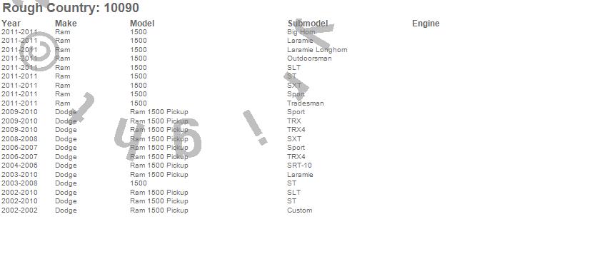 Below is an abbreviated list of applications for the Wheel Spacer.1500, Ram 1500, Dodge, Ram, 2011, 2010, 2009, 2008, 2007, 2006, 2005, 2004, 2003, 2002