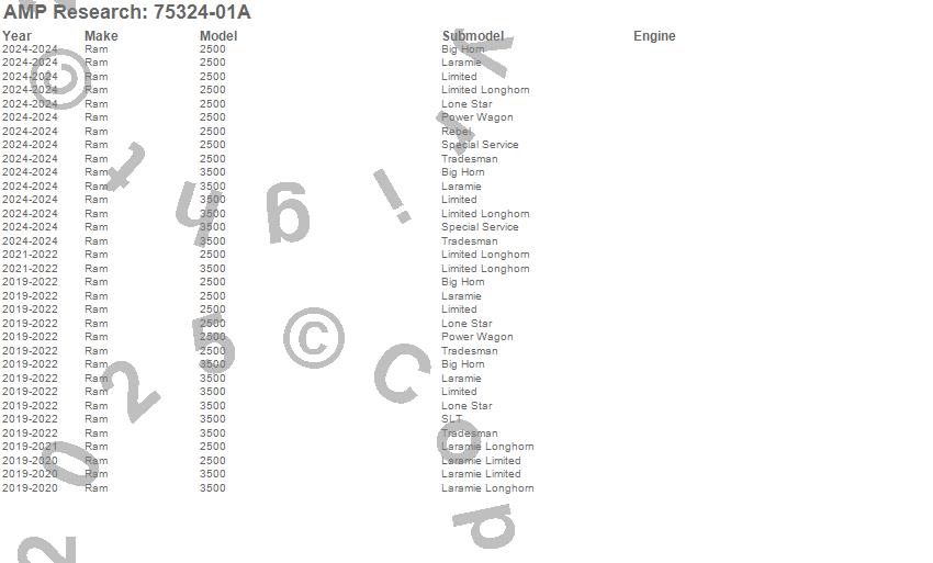Brand: AMP ResearchPart Number: 75324-01ATruck Step Type: BlackUPC: 815410014529