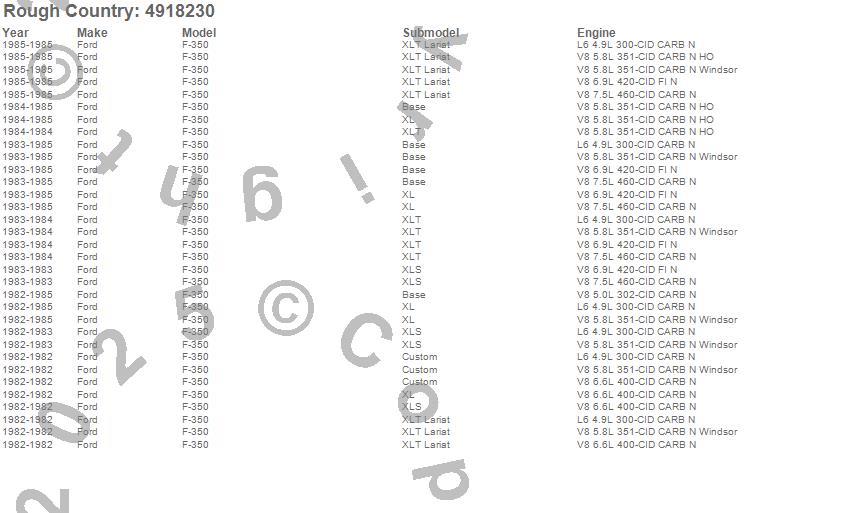 Below is an abbreviated list of applications for the Suspension Lift Kit.F-350, Ford, 1985, 1984, 1983, 1982