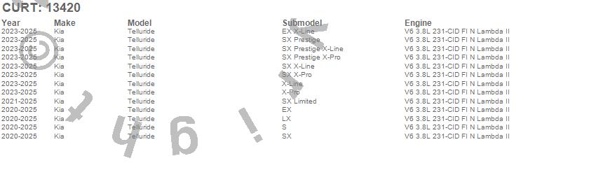 Below is an abbreviated list of applications for the Class III 2 in. Receiver Hitch.Telluride, Kia, 2025, 2024, 2023, 2022, 2021, 2020