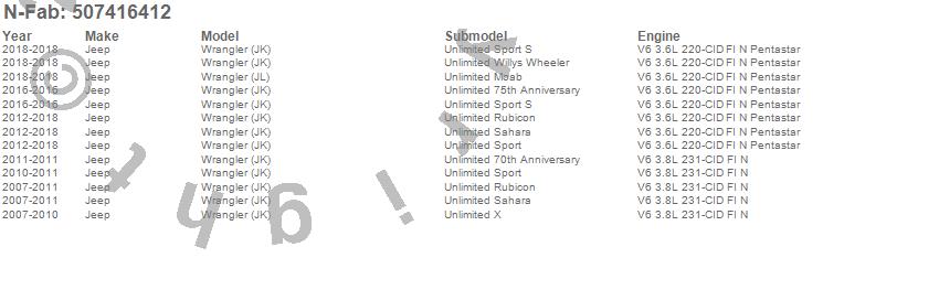 Below is an abbreviated list of applications for the Full Length Nerf Step RS Bar.Wrangler (JK), Wrangler (JL), Jeep, 2018, 2017, 2016, 2015, 2014, 2013, 2012, 2011, 2010, 2009, 2008, 2007