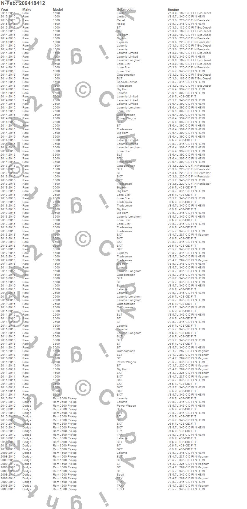 Below is an abbreviated list of applications for the Cab Length Nerf Step RS Bar.1500, 2500, 3500, Ram 1500, Ram 2500, Ram 3500, Dodge, Ram, 2015, 2014, 2013, 2012, 2011, 2010, 2009