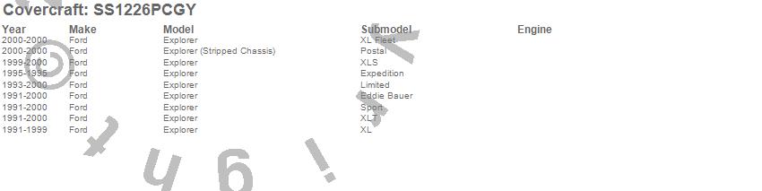 Below is an abbreviated list of applications for the SeatSaver Custom Seat Cover.Explorer, Explorer (Stripped Chassis), Ford, 2000, 1999, 1998, 1997, 1996, 1995, 1994, 1993, 1992, 1991