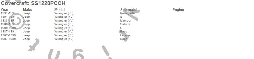 Below is an abbreviated list of applications for the SeatSaver Custom Seat Cover.Wrangler (YJ), Jeep, 1991, 1990, 1989, 1988, 1987
