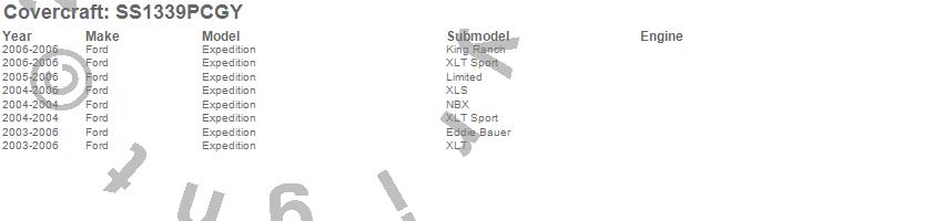 Below is an abbreviated list of applications for the SeatSaver Custom Seat Cover.Expedition, Ford, 2006, 2005, 2004, 2003