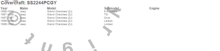 Below is an abbreviated list of applications for the SeatSaver Custom Seat Cover.Grand Cherokee (ZJ), Jeep, 1998, 1997, 1996
