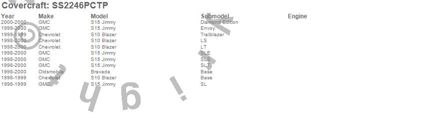 Below is an abbreviated list of applications for the SeatSaver Custom Seat Cover.Bravada, S10 Blazer, S15 Jimmy, Chevrolet, GMC, Oldsmobile, 2000, 1999, 1998