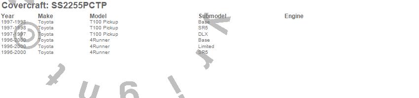 Below is an abbreviated list of applications for the SeatSaver Custom Seat Cover.4Runner, T100 Pickup, Toyota, 2000, 1999, 1998, 1997, 1996
