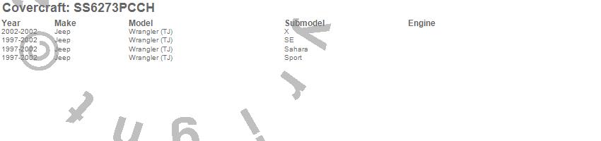 Below is an abbreviated list of applications for the SeatSaver Custom Seat Cover.Wrangler (TJ), Jeep, 2002, 2001, 2000, 1999, 1998, 1997