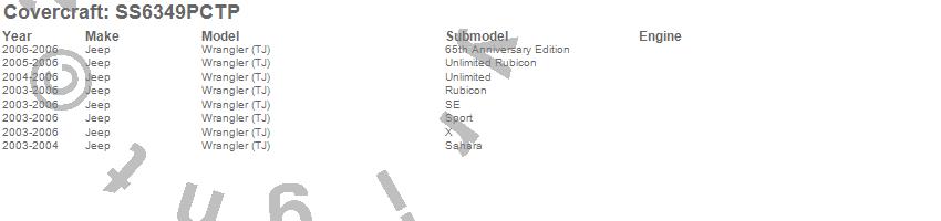 Below is an abbreviated list of applications for the SeatSaver Custom Seat Cover.Wrangler (TJ), Jeep, 2006, 2005, 2004, 2003