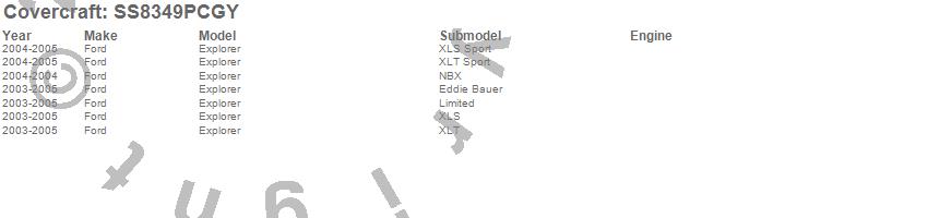 Below is an abbreviated list of applications for the SeatSaver Custom Seat Cover.Explorer, Ford, 2005, 2004, 2003