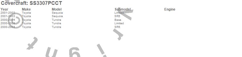 Below is an abbreviated list of applications for the SeatSaver Custom Seat Cover.Sequoia, Tundra, Toyota, 2004, 2003, 2002, 2001, 2000