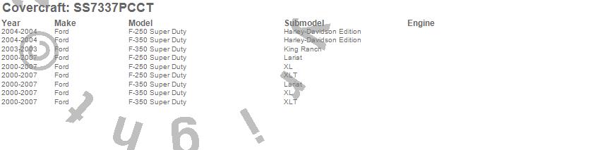 Below is an abbreviated list of applications for the SeatSaver Custom Seat Cover.F-250 Super Duty, F-350 Super Duty, Ford, 2007, 2006, 2005, 2004, 2003, 2002, 2001, 2000