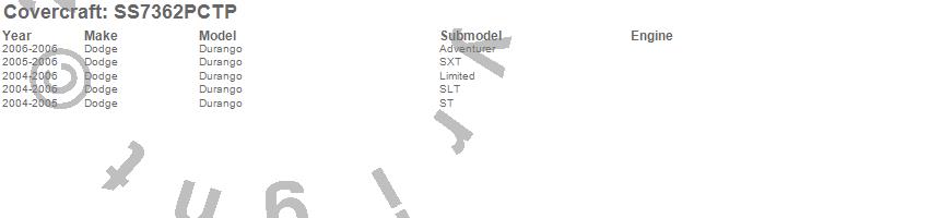 Below is an abbreviated list of applications for the SeatSaver Custom Seat Cover.Durango, Dodge, 2006, 2005, 2004