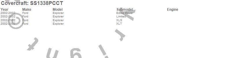 Below is an abbreviated list of applications for the SeatSaver Custom Seat Cover.Explorer, Ford, 2002