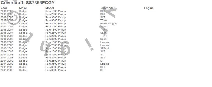 Below is an abbreviated list of applications for the SeatSaver Custom Seat Cover.Ram 1500, Ram 2500, Ram 3500, Dodge, 2008, 2007, 2006, 2005, 2004
