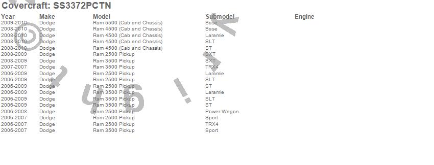 Below is an abbreviated list of applications for the SeatSaver Custom Seat Cover.Ram 2500, Ram 3500, Ram 4500, Ram 5500, Dodge, 2010, 2009, 2008, 2007, 2006