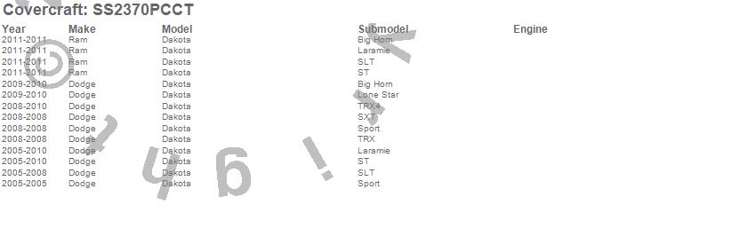 Below is an abbreviated list of applications for the SeatSaver Custom Seat Cover.Dakota, Dodge, Ram, 2011, 2010, 2009, 2008, 2007, 2006, 2005