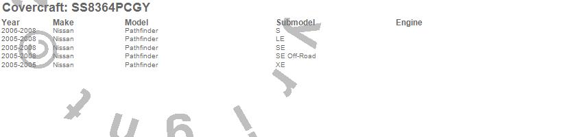 Below is an abbreviated list of applications for the SeatSaver Custom Seat Cover.Pathfinder, Nissan, 2008, 2007, 2006, 2005