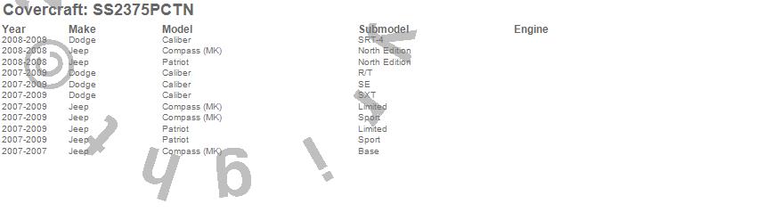 Below is an abbreviated list of applications for the SeatSaver Custom Seat Cover.Caliber, Compass, Patriot, Dodge, Jeep, 2009, 2008, 2007