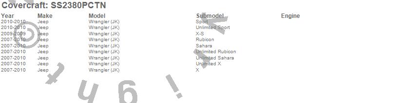 Below is an abbreviated list of applications for the SeatSaver Custom Seat Cover.Wrangler (JK), Jeep, 2010, 2009, 2008, 2007