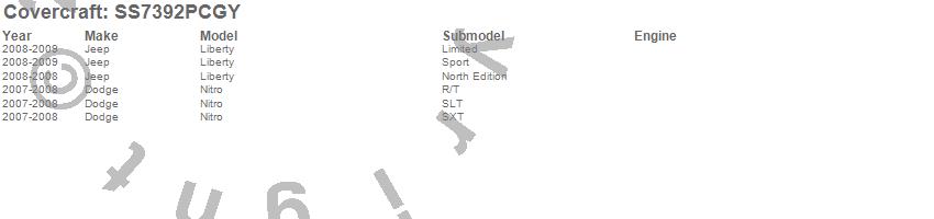 Below is an abbreviated list of applications for the SeatSaver Custom Seat Cover.Liberty, Nitro, Dodge, Jeep, 2009, 2008, 2007