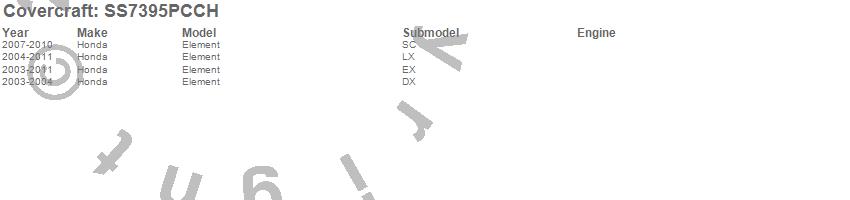 Below is an abbreviated list of applications for the SeatSaver Custom Seat Cover.Element, Honda, 2011, 2010, 2009, 2008, 2007, 2006, 2005, 2004, 2003