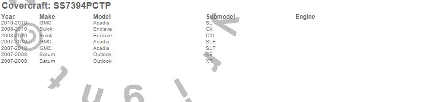Below is an abbreviated list of applications for the SeatSaver Custom Seat Cover.Acadia, Enclave, Outlook, Buick, GMC, Saturn, 2010, 2009, 2008, 2007