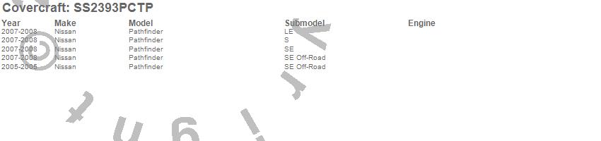 Below is an abbreviated list of applications for the SeatSaver Custom Seat Cover.Pathfinder, Nissan, 2008, 2007, 2005