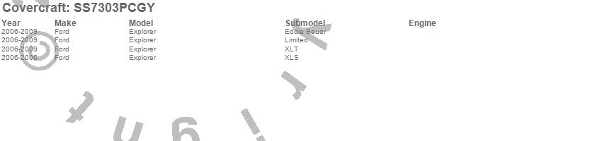 Below is an abbreviated list of applications for the SeatSaver Custom Seat Cover.Explorer, Ford, 2009, 2008, 2007, 2006
